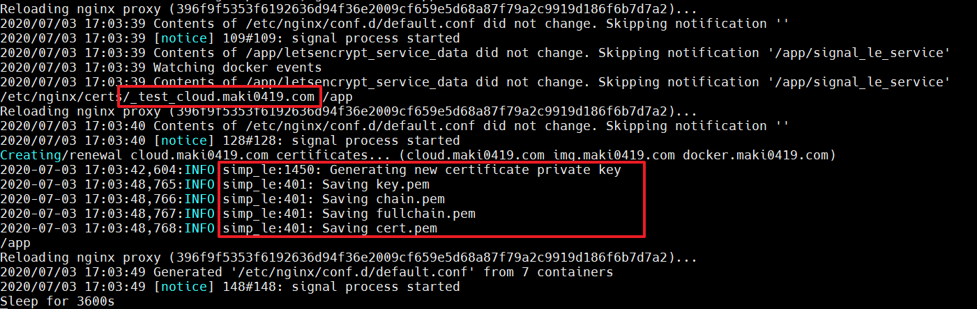 docker logs proxy_le -f注意紅框處,這樣就是成功